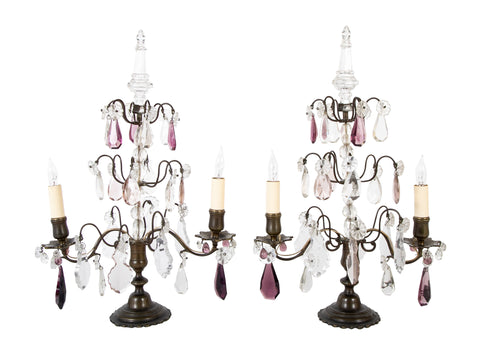 Pair of Early 20th Century Brass & Cut Glass Electrified Candelabra