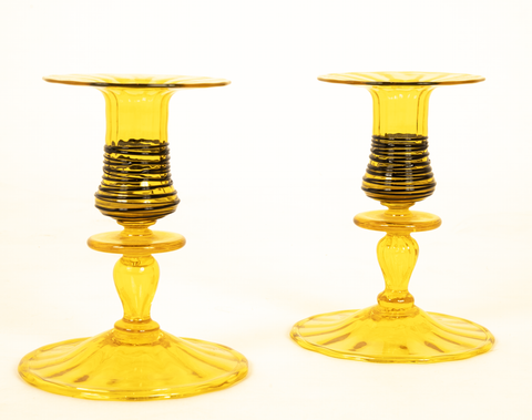 A Pair of Steuben Threaded Glass Candlesticks