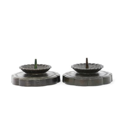 Just Andersen Pair of "Disko" Metal Low Candlesticks