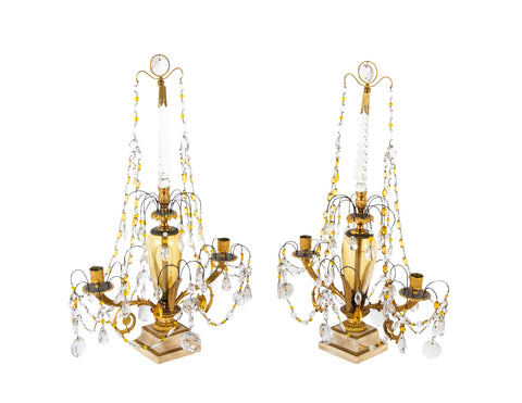 Pair of Early 19th Century Swedish Crystal Candelabra on White Marble Bases