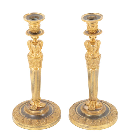 Pair of French Consulat Ormolu Candlesticks