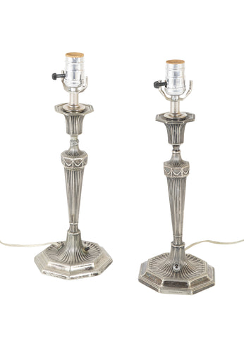 Pair of Gorham Adams Style Candlestick Lamps from the Vanderbilt Hotel, NY. Circa 1903.