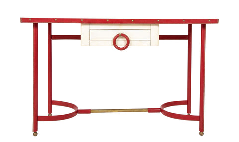 A Parchment and Leather Clad Desk by Jacques Adnet