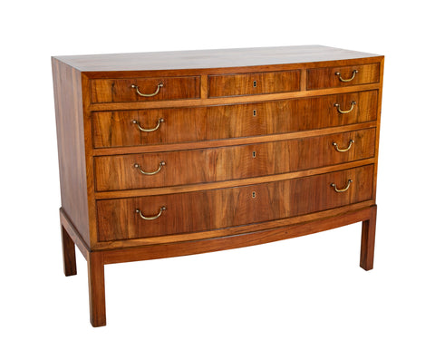 A Danish walnut three over three drawer commode having brass pulls.
