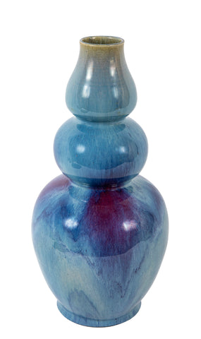 A Chinese flambe triple gourd porcelain vase with blue-purple glaze. Early 19th Century. Qing Dynasty.