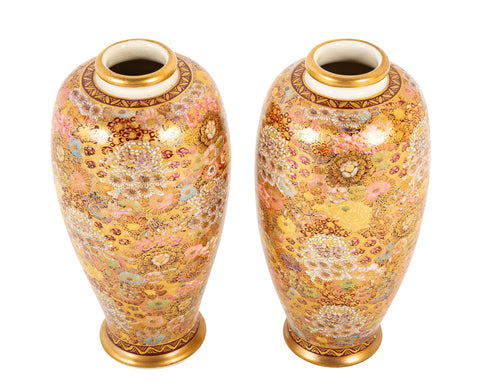 A pair of Japanese late 19th century Satsuma vases with overall floral decor.