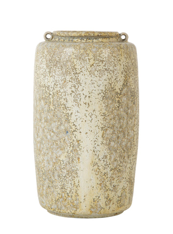 Cylindrical stoneware vase by Arne Bang ( 1901 - 1983 ) Danish sculptor and ceramic artist. Mid 20th century.