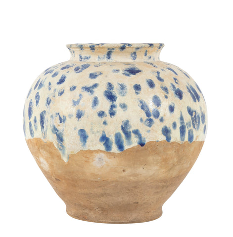 Chinese Blue Spotted White Glazed Ovoid Pottery Jar with Everted Mouth