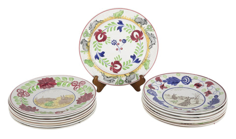 English "Rabbitware" Plates with Various Scenes & Patterns