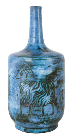 Jacques Blin Incised Blue Glazed Ceramic Vase with Animal Decor