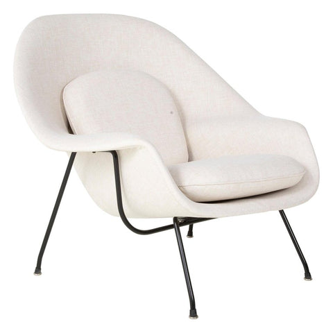 An early production womb chair designed by Eero Saarinen. Produced by Knoll starting in 1946, this model was produced in 1952. It retains its original label. Newly reupholstered.