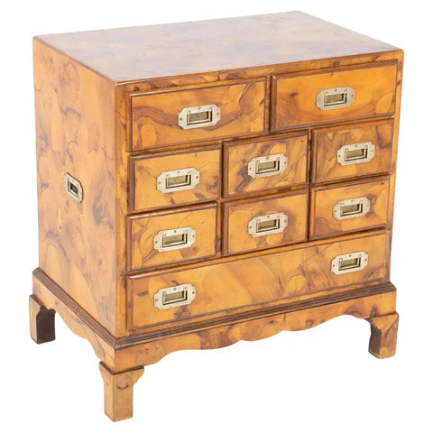 Italian Campaign Chest of Drawers with Olive Wood Veneer, Mid-20th Century
