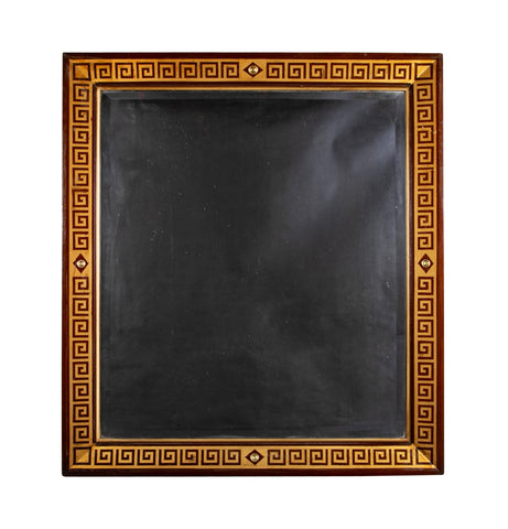 Greek Key and mahogany console mirror with beveled glass with brass rondels. Circa 1930's.
