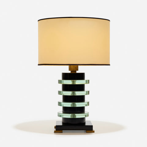 A Striking Ebonized Wood and Glass Lamp Attributed to Donald Deskey