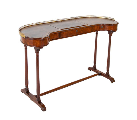 An English Regency kidney shaped mahogany desk with tooled leather top.  Circa 1840.