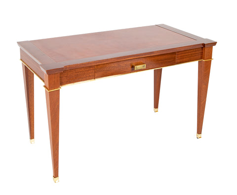 Jacques Quinet Leather Top Sapele Wood Desk with Bronze Accents