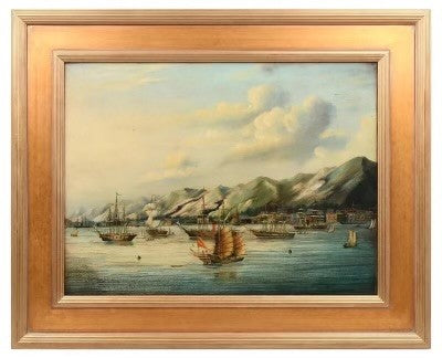 A 19th Century Chinese export oil painting of "view of Victoria".