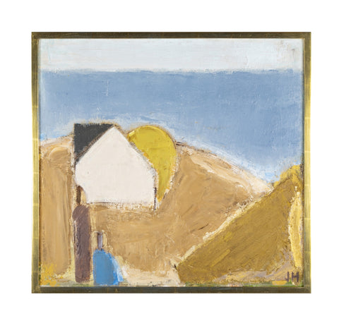 Johannes Hofmeister ( Denmark. 1914 - 1990 ) oil on canvas of figures in landscape with dedication. Initialed and dated 1971.