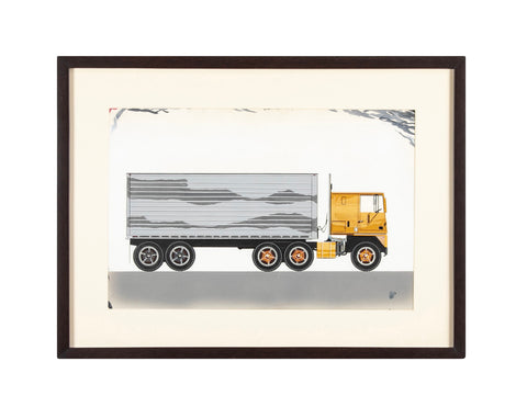 Original signed ink & wash on paper of a Big Rig by American automobile artist/illustrator Russell J. Von Sauers. Sauers worked for Open Air Coupe, GMC Auto, Chrysler Auto, Auto Trend Magazine and Hemmings Auto News. Circa 1970 - 1980.