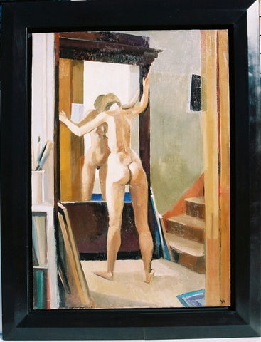 Yves HERSENT (French, 1925 – 1987) Nu à l’Armoire Signed YH (lower right) Dated and Studio stamp on the back Oil on canvas. Excellent condition Beautiful,custom hand-made, modern floating style frame Yves Hersent, a student of the fresco painter R. Lesbounit, was part of the “group of Montparnasse”, a gathering of modernist artists, from 1942 to 1948. Then, a student of the “Arts Décoratifs” of Paris, under the teaching of the leading artist of the “Réalité Poétique” Maurice Brianchon, Hersent felt close to the Nabis movement. His winning of First Prize for the Art category for the city of Paris gave him a position as a professor in several schools of the capital from 1948 to 1958. From 1958 to1985, he directed a private school “Les Travaux Pratiques” organized as a studio to teach drawing, painting but also photography, cinema and television. The awakening and developing of budding artistic talents gave full meaning to Hersent’s life; probably at his own artistic career’s expenses. In 1981 he almost died, from then on he realized that he had very little time and dedicated all his free time to paint for himself. His focus was to paint all that he had always dreamed of, desired or lived: the female body in its most sensual and natural state of abandonment. Controlled erotism became the recurring theme of his work that, at the decline of his life, he sublimated, creating elaborate compositions, well-balanced and filled with light.