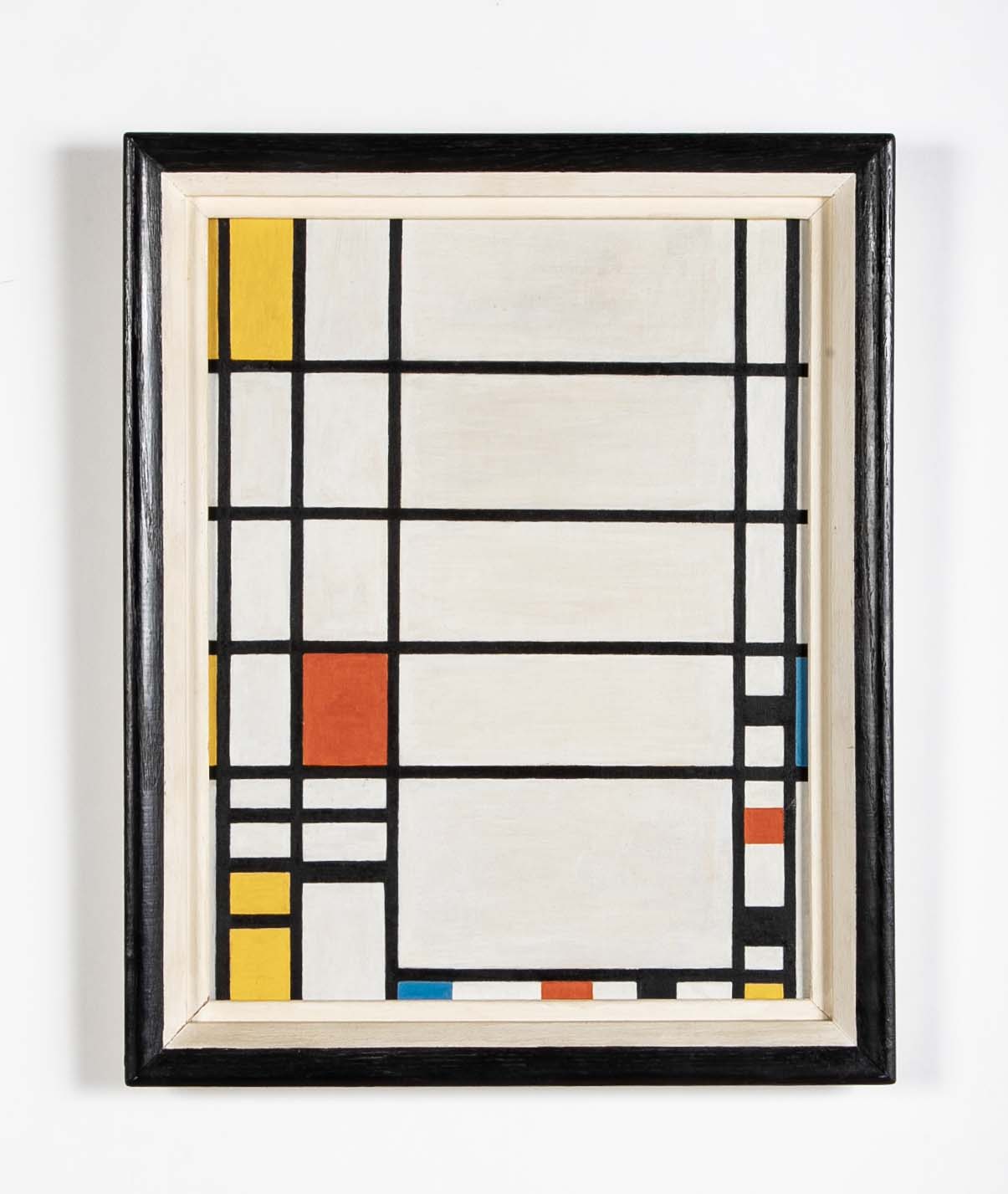 Mid-Century unsigned oil on board inspired by Mondrian. Circa 1950.
