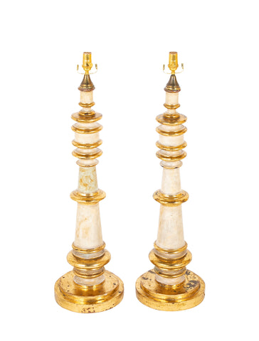 Pair of 19th Century Italian Neo-Classical lamps partially gilt and painted. Circa 1890 - 1910. Rewired.