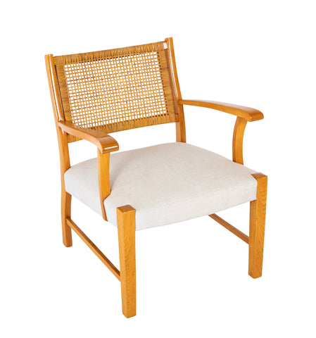 A Mid-Century Danish beech frame armchair with caned back. Circa 1950's.