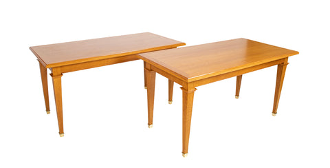 A pair of oak library tables having tapered legs in the manner of Jacques Adnet. Mid 20th century.