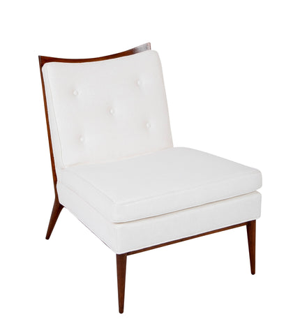 A Paul McCobb lounge chair with lacquered wood frame and newly upholstered seat and back.