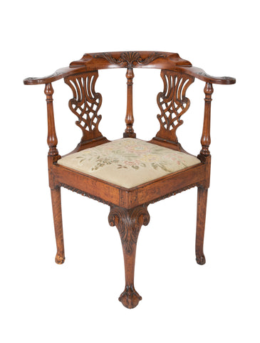 English George II Chippendale Mahogany Ball & Claw Corner Chair