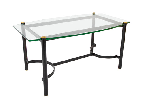 Jacques Adnet Leather Wrapped Dining Table with Glass Top