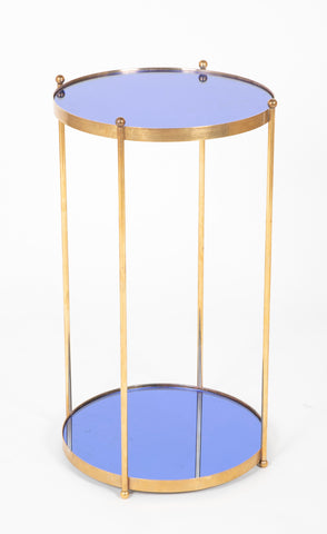 Mid-Century Italian Round Side Table with Blue Glass Top and Base