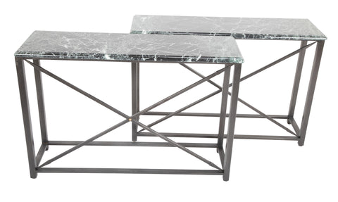 Pair of Neo-Classical style steel console tables with Verde Antico marble tops. Circa 1980's.