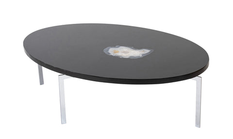 Philippe Barbier Oval Black Resin Coffee Table with Agate Insert