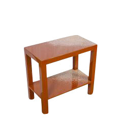 Dramatic and well-proportioned two-level side table, scattered diffused true eggshell-inlay on both surfaces, the body in an ox-blood red lacquer. Circa 1980's.