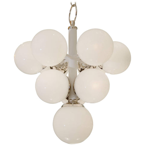 White Enameled Pyramid Chandelier with Gloss Opal Globes