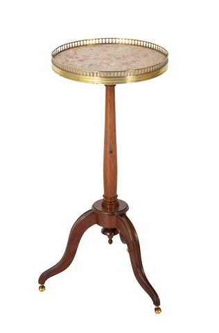 French 20th century late Louis XVI style marble top gueridon with pierced gallery on mahogany tripod base.