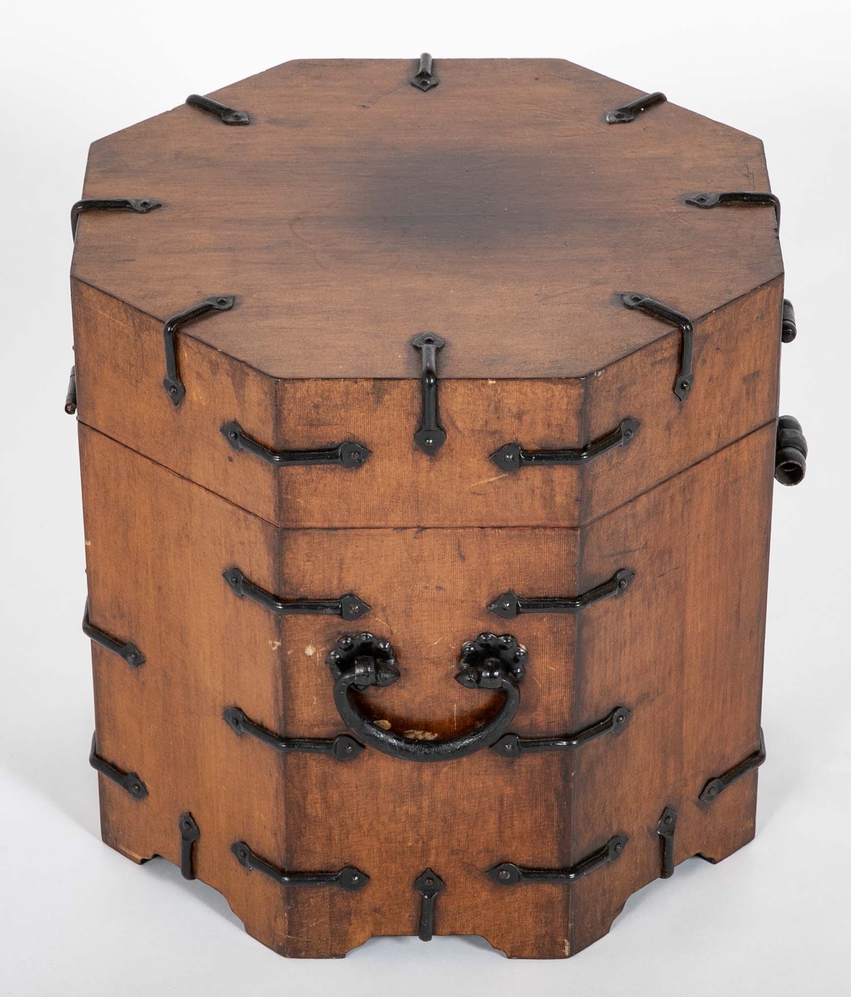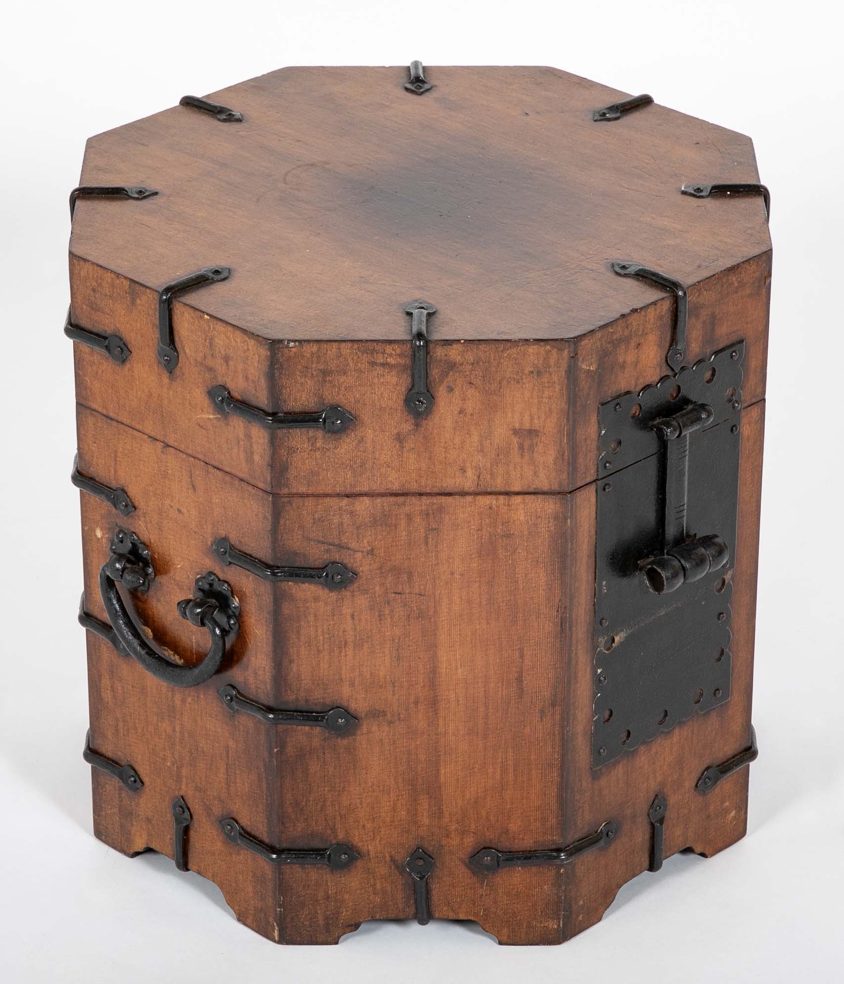 Pair of hexagonal Southeast Asian hardwood and iron side tables.  Circa 1950's.