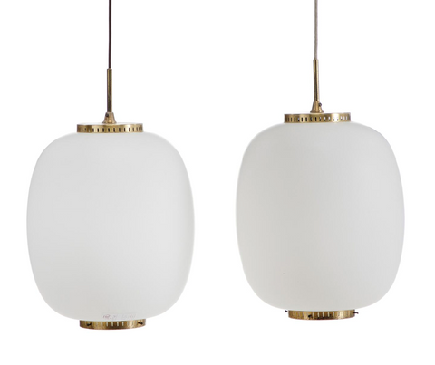 A pair of frosted opal glass light pendants manufactured by Lyfa H.