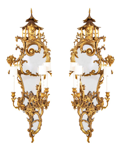 Pair of French Restauration Brass Candlesticks with Swirled Acanthus Leaves & Flowers