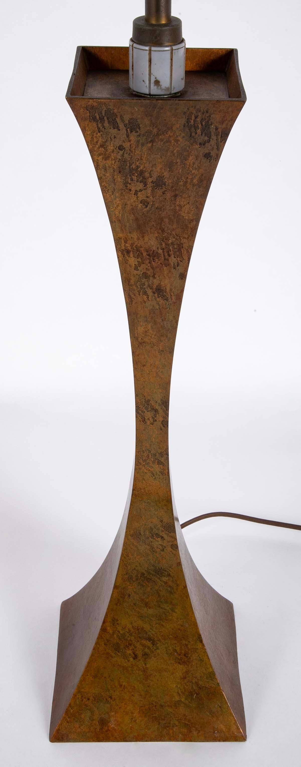 A pair of Stewart Ross James for Hansen patinated metal lamps having concave square columns.