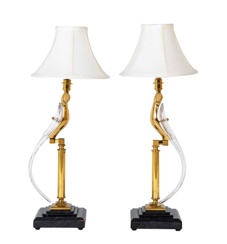 Very Unusual Murano Glass and Brass Lamps on Marble Bases