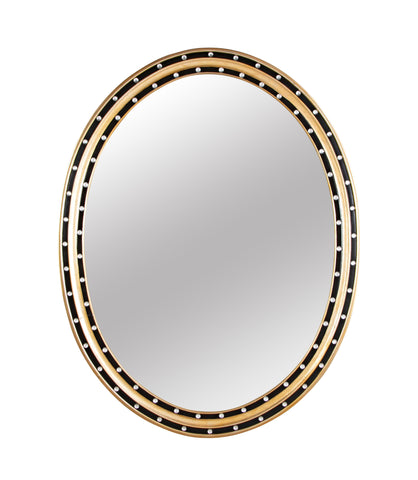 An Irish Ebonized & Parcel Gilt Oval mirror with faceted bead decoration.