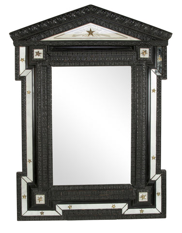 A Baroque style Flemish ebonized mirror and frame with gilt metal star motif.