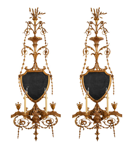Important Pair of Late 19th Century Gilded Sconce Mirror Appliques