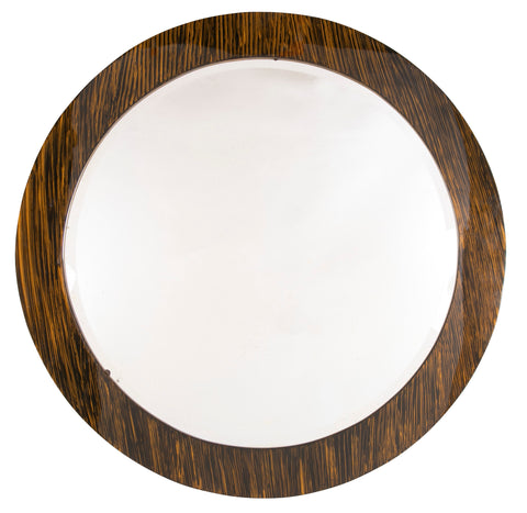 Karl Springer Style Round Mirror With Faux Tigers Eye Lacquered Finish