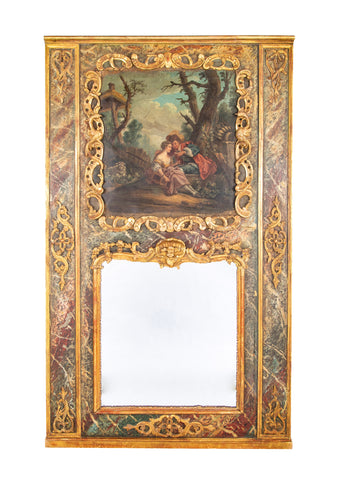 Late 18th Century French Trumeau Mirror with Romantic Painting