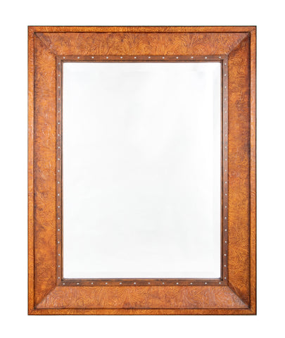 Ralph Lauren Labeled Mirror with Rare Embossed Leather Border