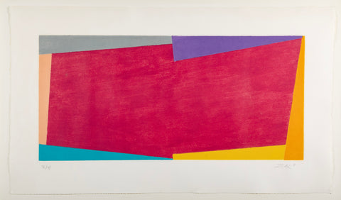 Associated with the Minimalism and color field painting movements of the mid-20th century, painter Larry Zox creates abstract compositions that have drawn comparisons to those of Frank Stella and Kenneth Noland. Zox was included in “Systemic Painting,” the groundbreaking 1966 exhibition of geometric abstraction at the Guggenheim, and presented a solo exhibition at the Whitney Museum in 1973. The following year, he took part in the inaugural group show at the Hirshhorn Museum and Sculpture Garden. The progression of Zox’s signature style —often consisting of juxtaposed geometric forms and vibrant colors —originates with his early collages, in which he affixed painted paper shapes onto plywood sheets. From there, he began to replicate the collage effect in his paintings, creating hard-edged geometric forms in pure, flat colors encased by white boundaries to look like they had been been cut and pasted onto the panel.