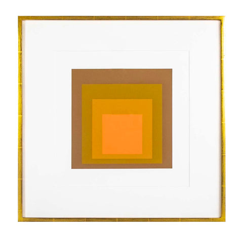 Josef Albers "Homage to the Square" from "Formulation: Articulation 1972". Silkscreen print floated in 23 karat yellow gold frame using all acid free archival materials. From Portfolio #176 of 1000 printed. Printed by Sirocco screen printing, New Haven. Published by Ives-Sillman Inc., New Haven. Printed on Mohawk Superfine Bristol. Folio II folder 19.
